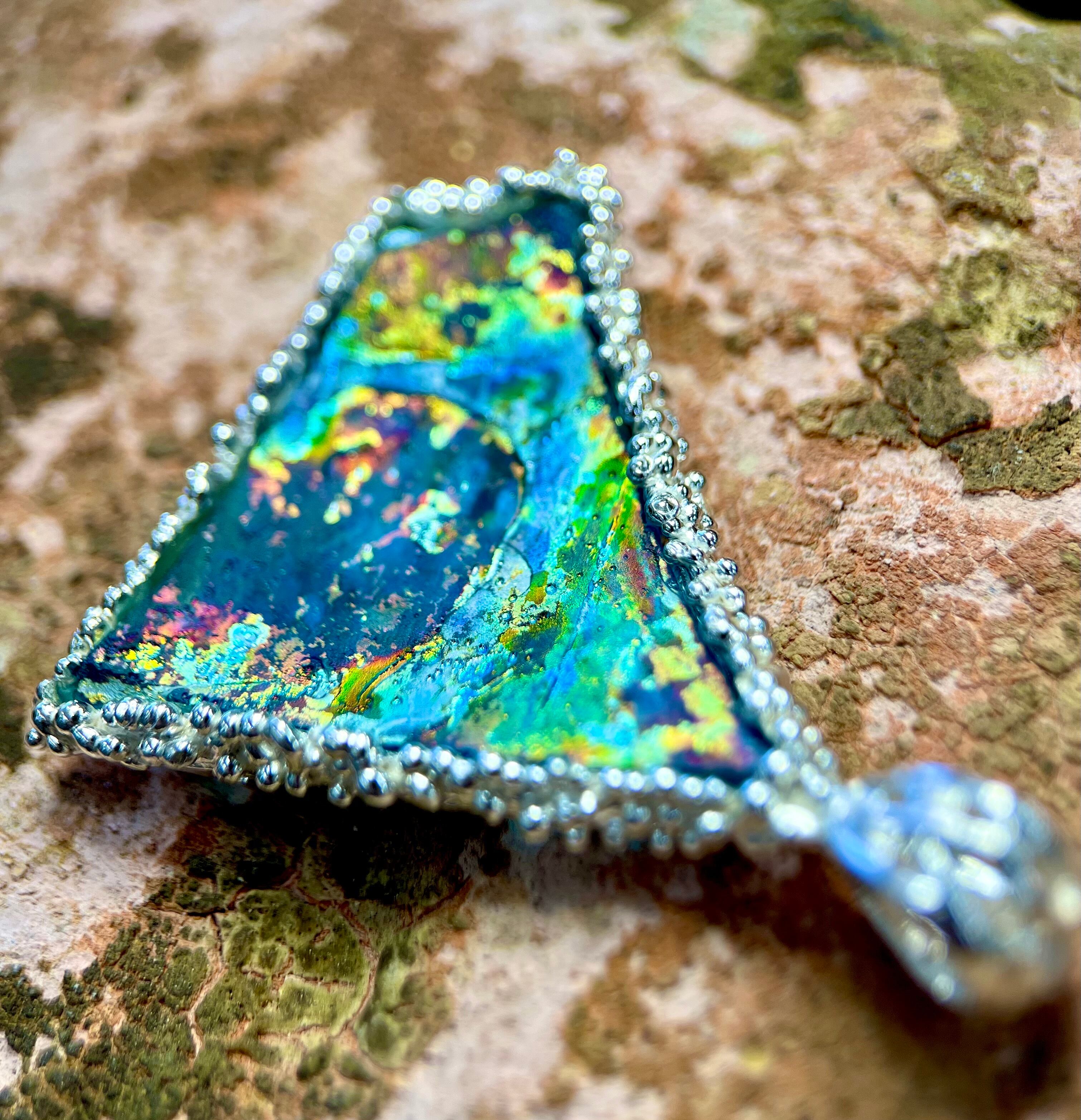 ローマングラスsilverペンダント(送料無料)地球の呼吸のニオイがします..!