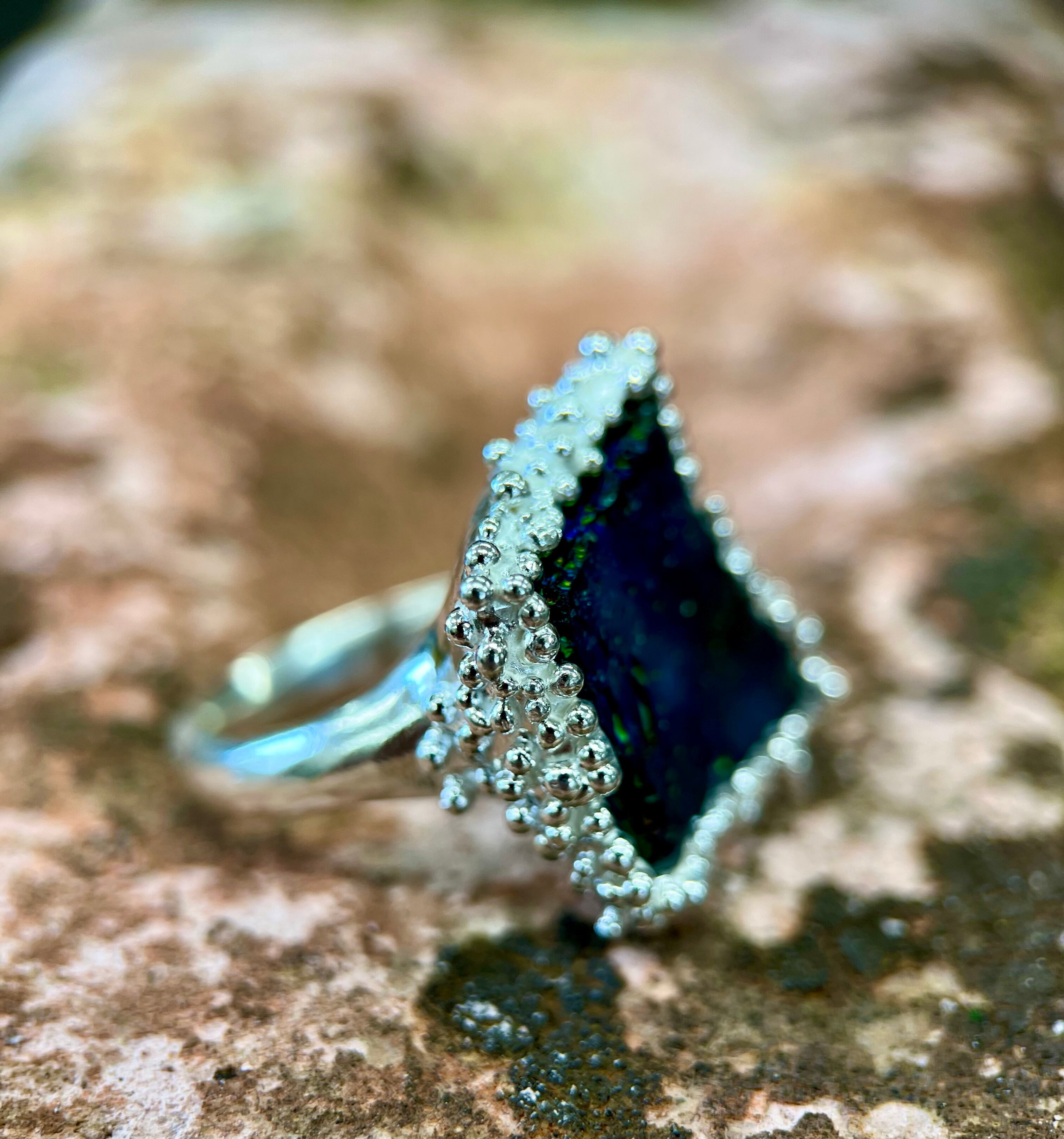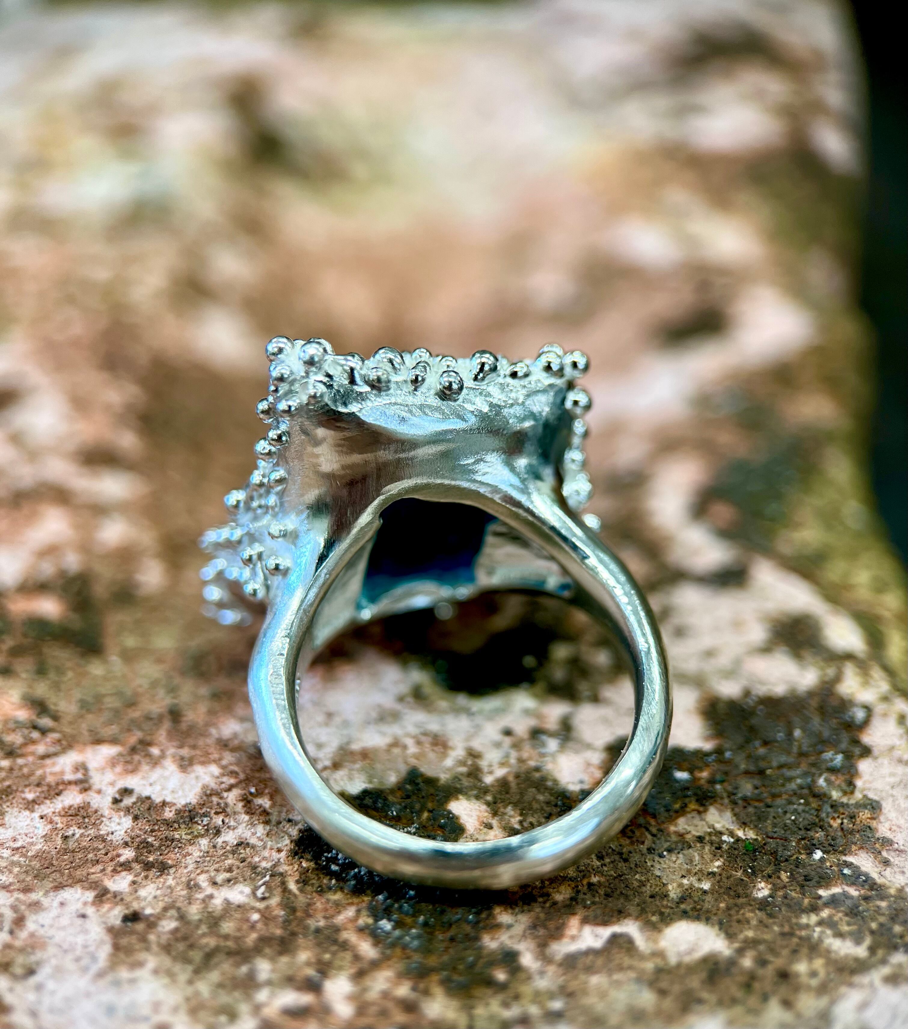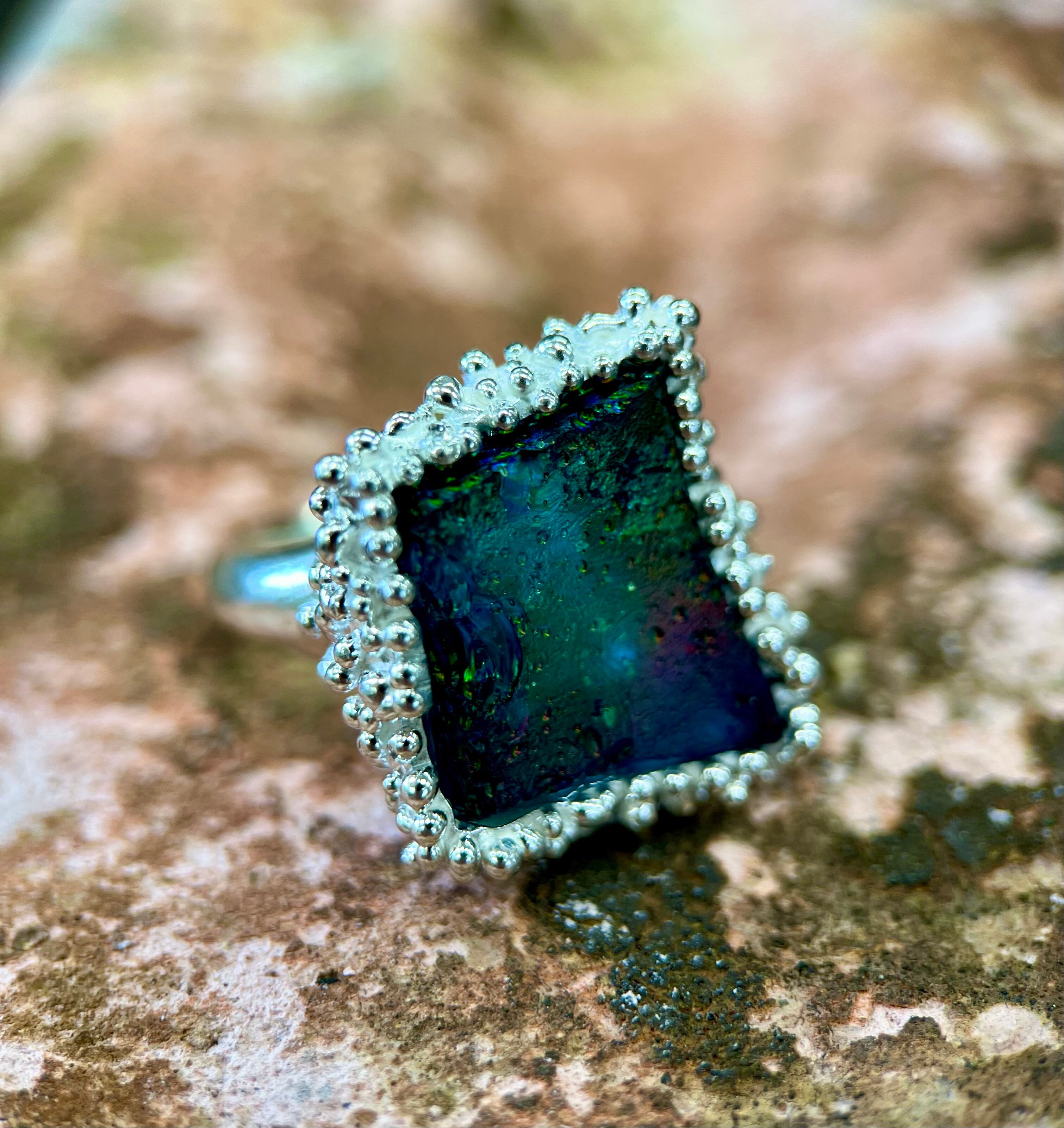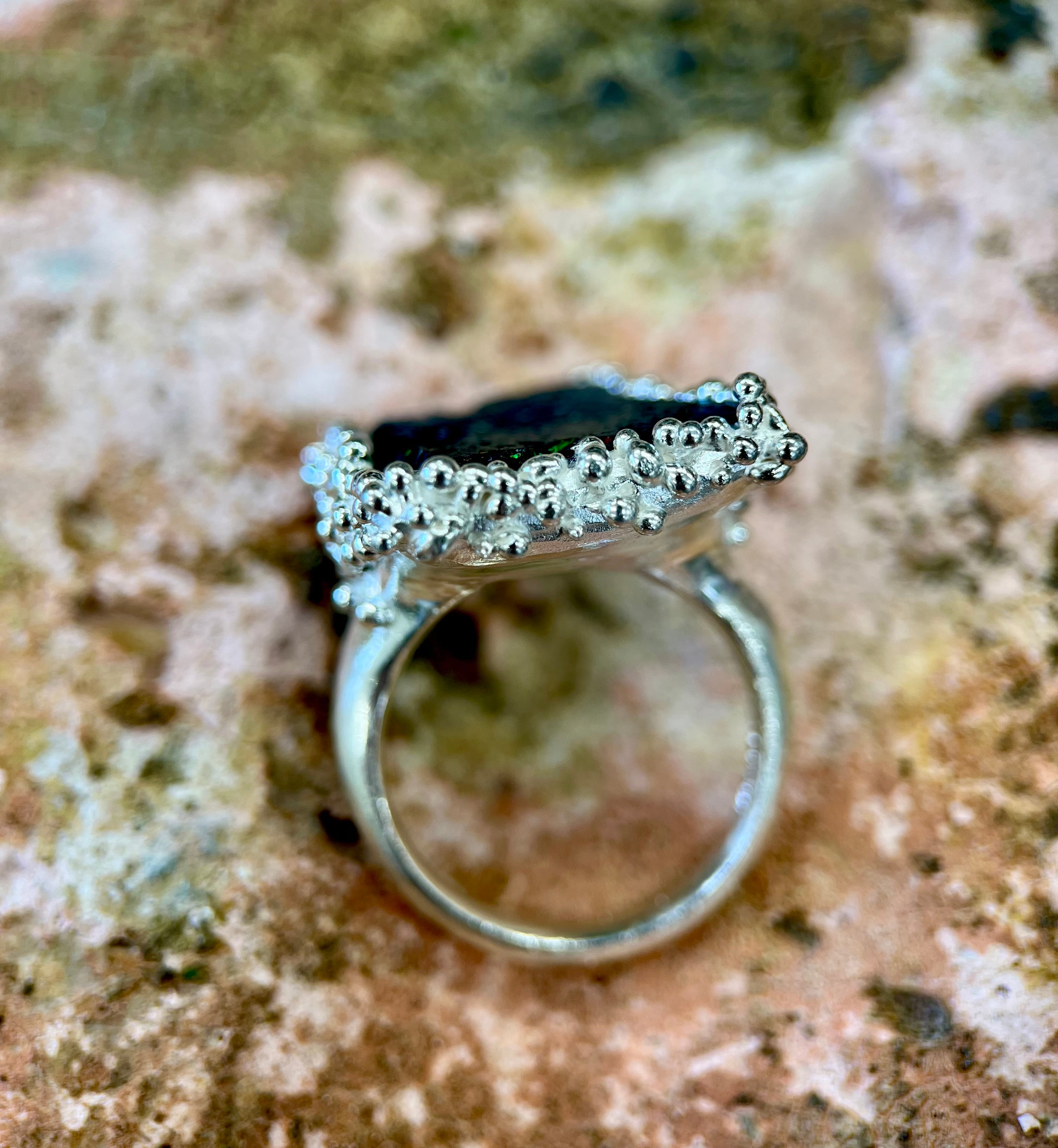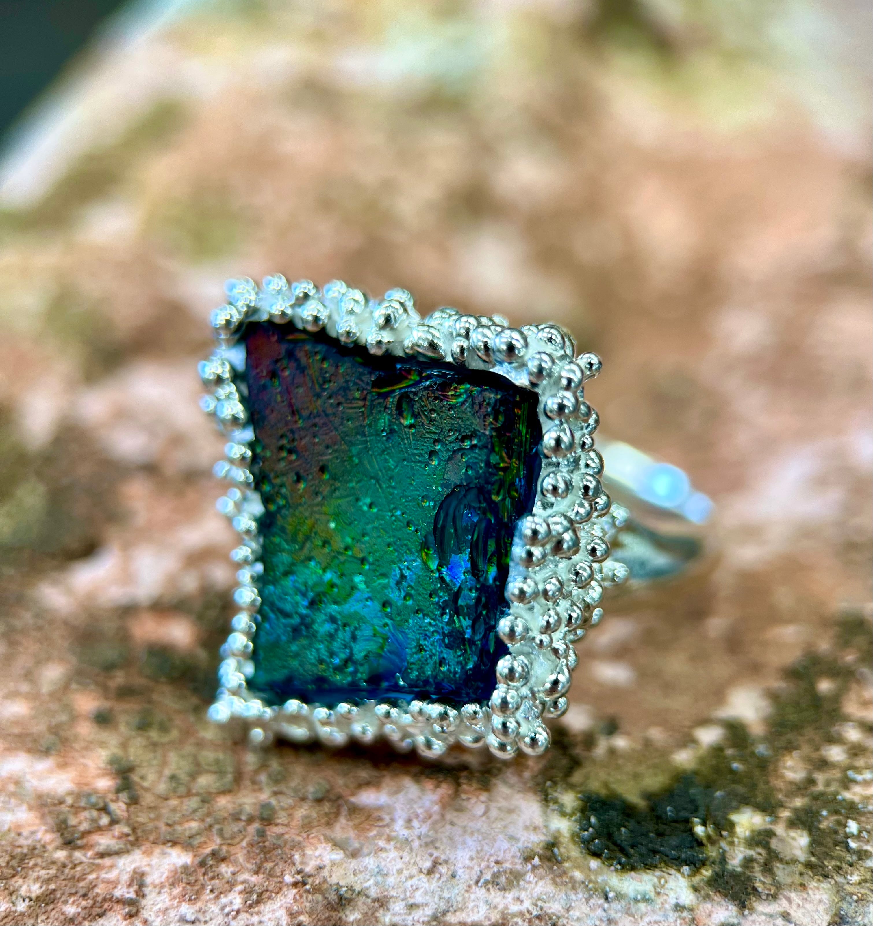 ローマングラスsilverリング(送料無料)シルクロードの中継地から採掘