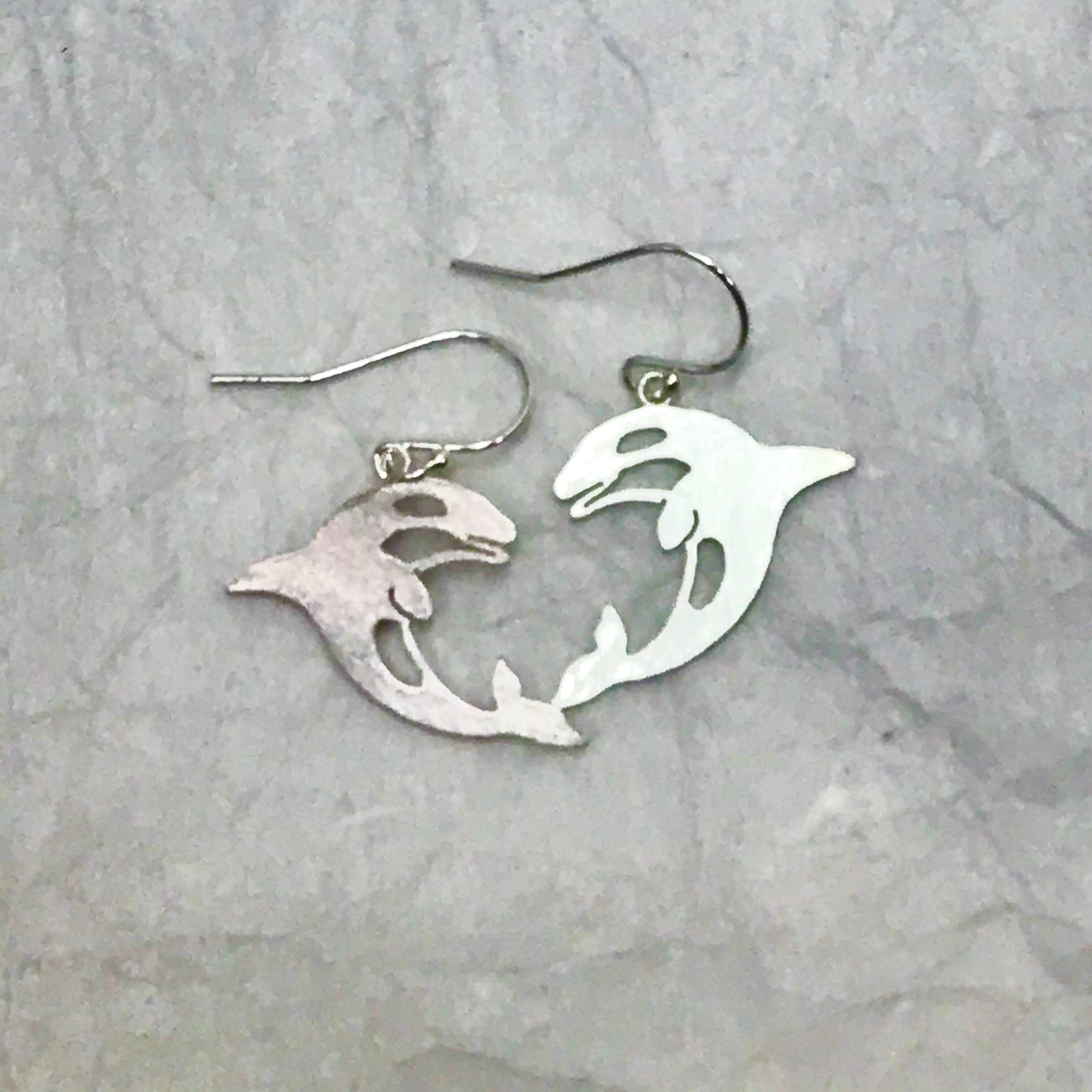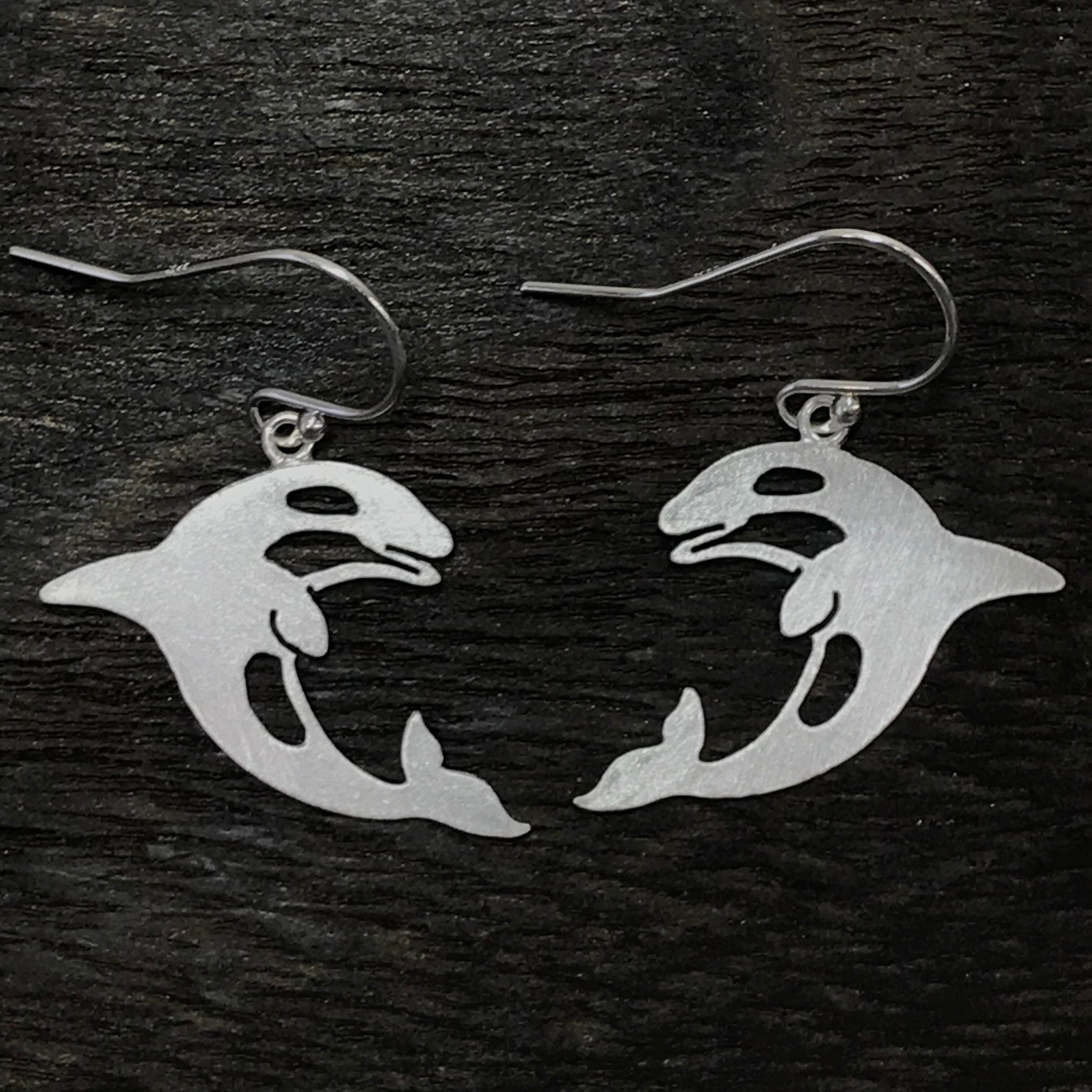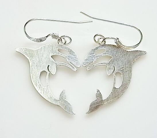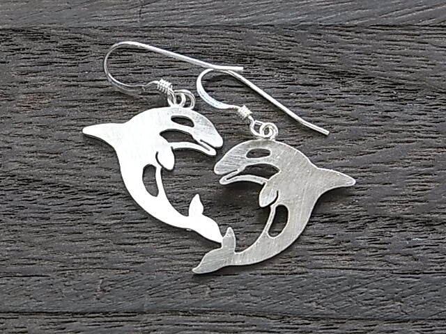 シルバーシャチシルエット・シャチがジャンプピアス(送料無料)