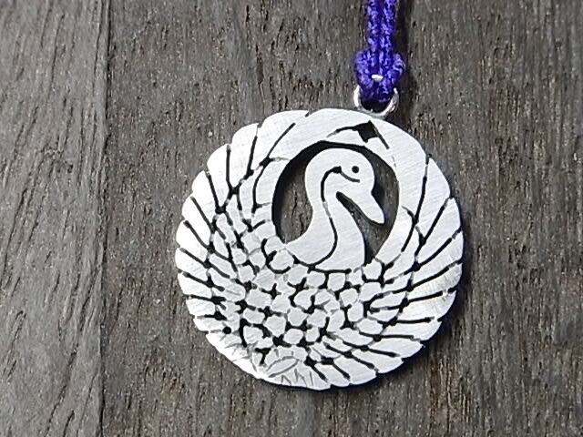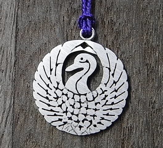 一つ一つ透かし加工 ジャパニーズKAMON SILVER925家紋根付・鶴丸 最も優美で華やかな紋 直径2cm 3.3g