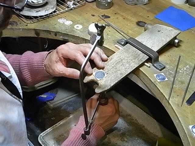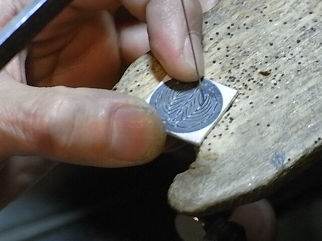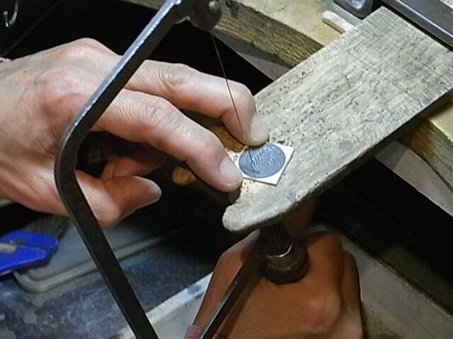 SILVER925「丸に抱柏」・家紋根付 手造り透かし加工 直径2cm 3g
