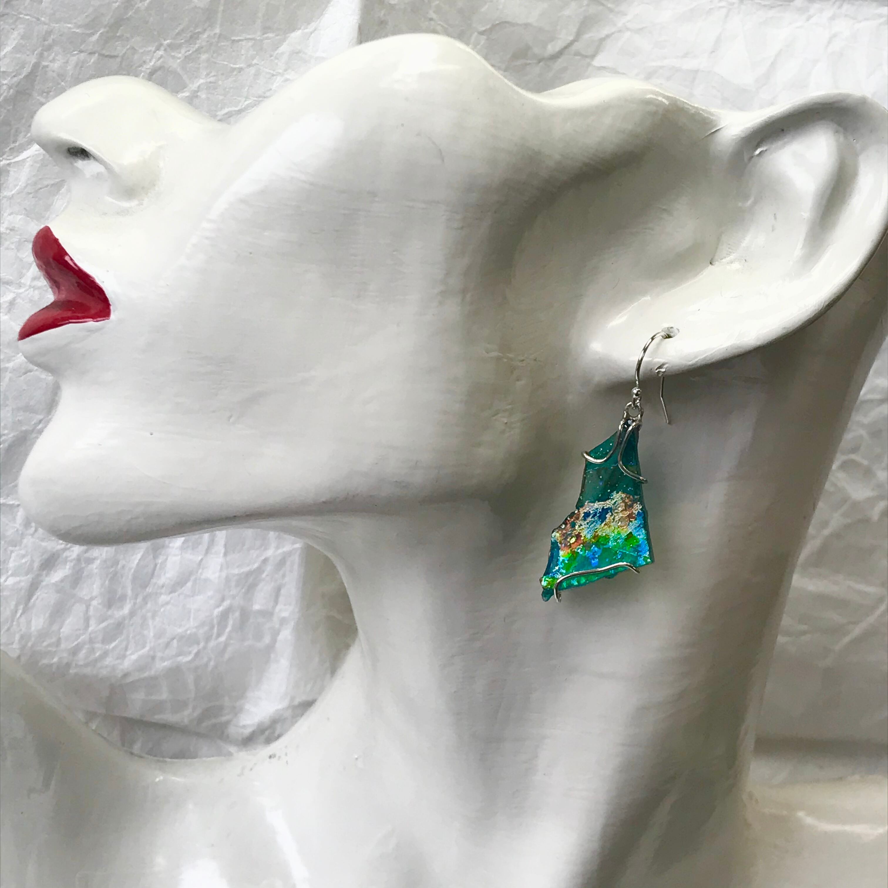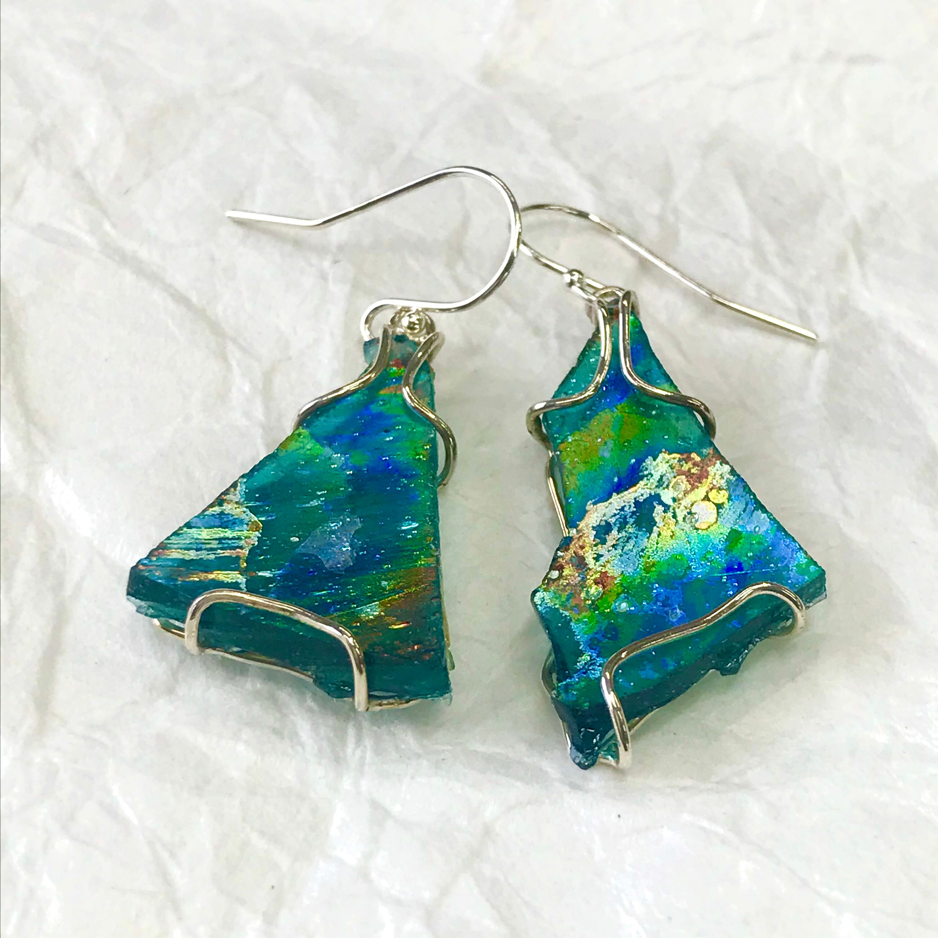 意思持つガラスは付ける貴方のお顔を引立てます!ローマングラスピアス(送料無料)