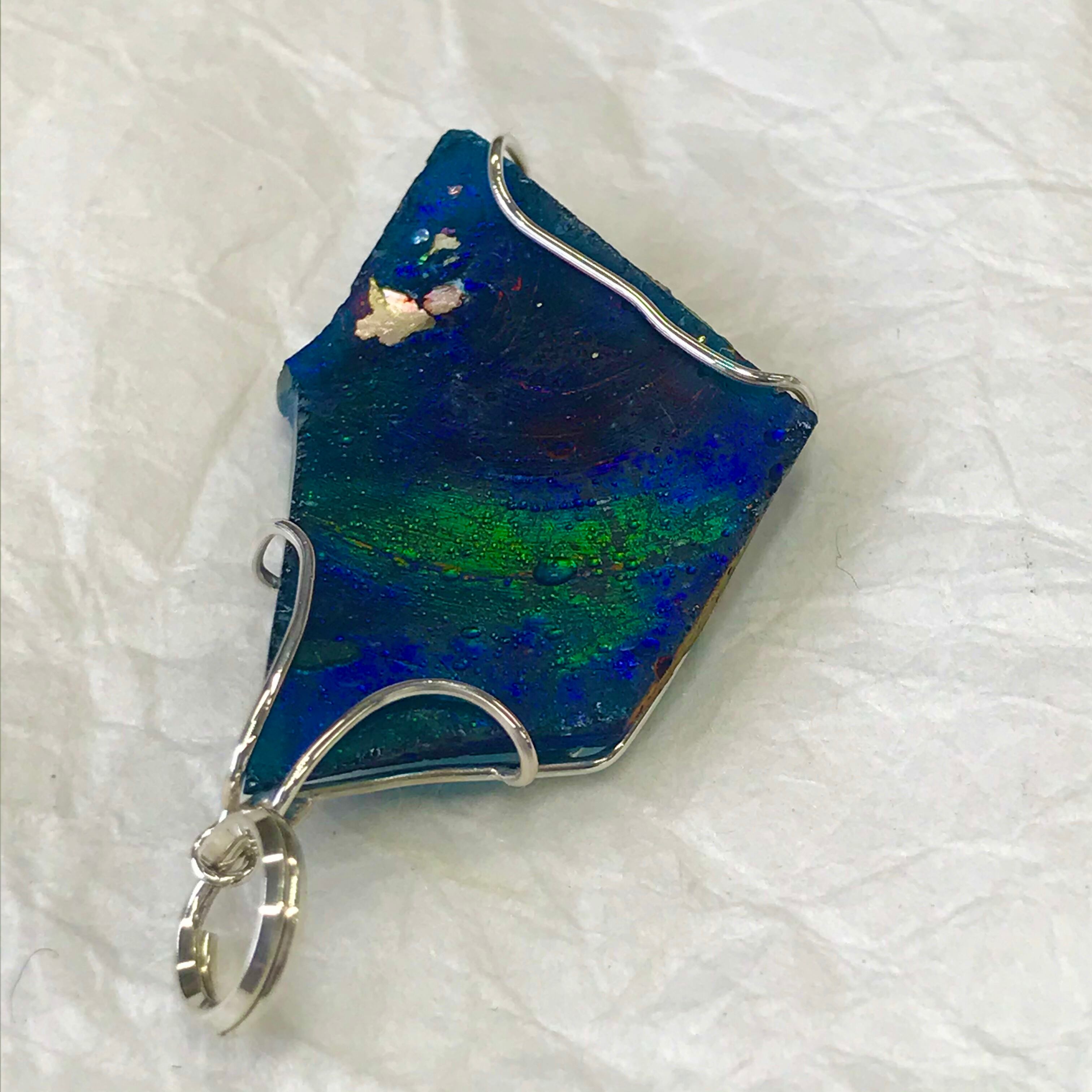 熱砂の中ガラスはグランブルーに憧れた!ローマングラスペンダント(送料無料)