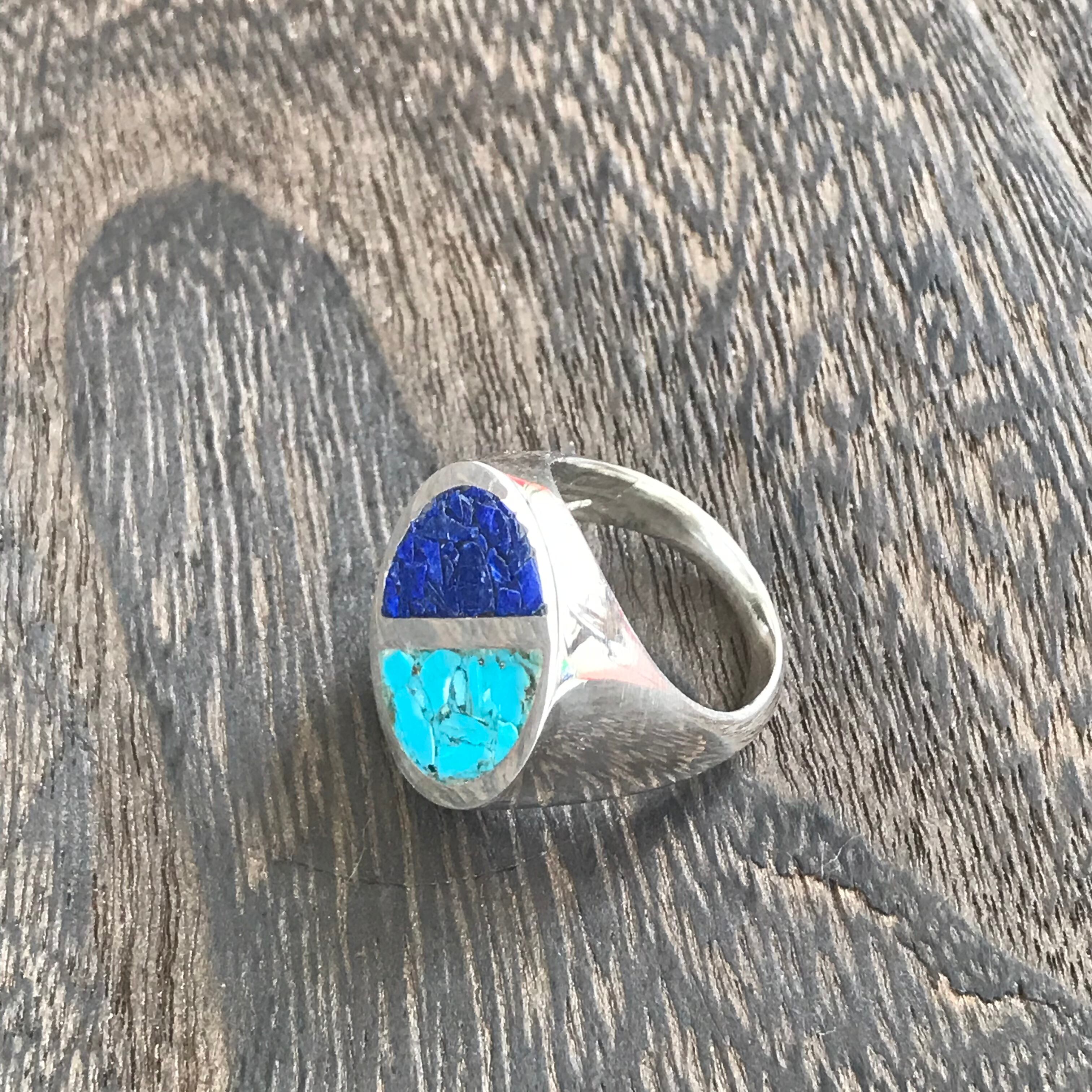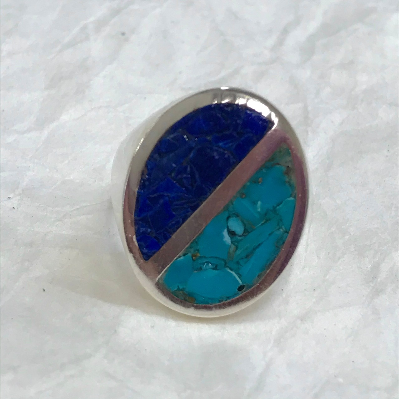 ターコイズとラピスラズリを砕いて敷きつめました。