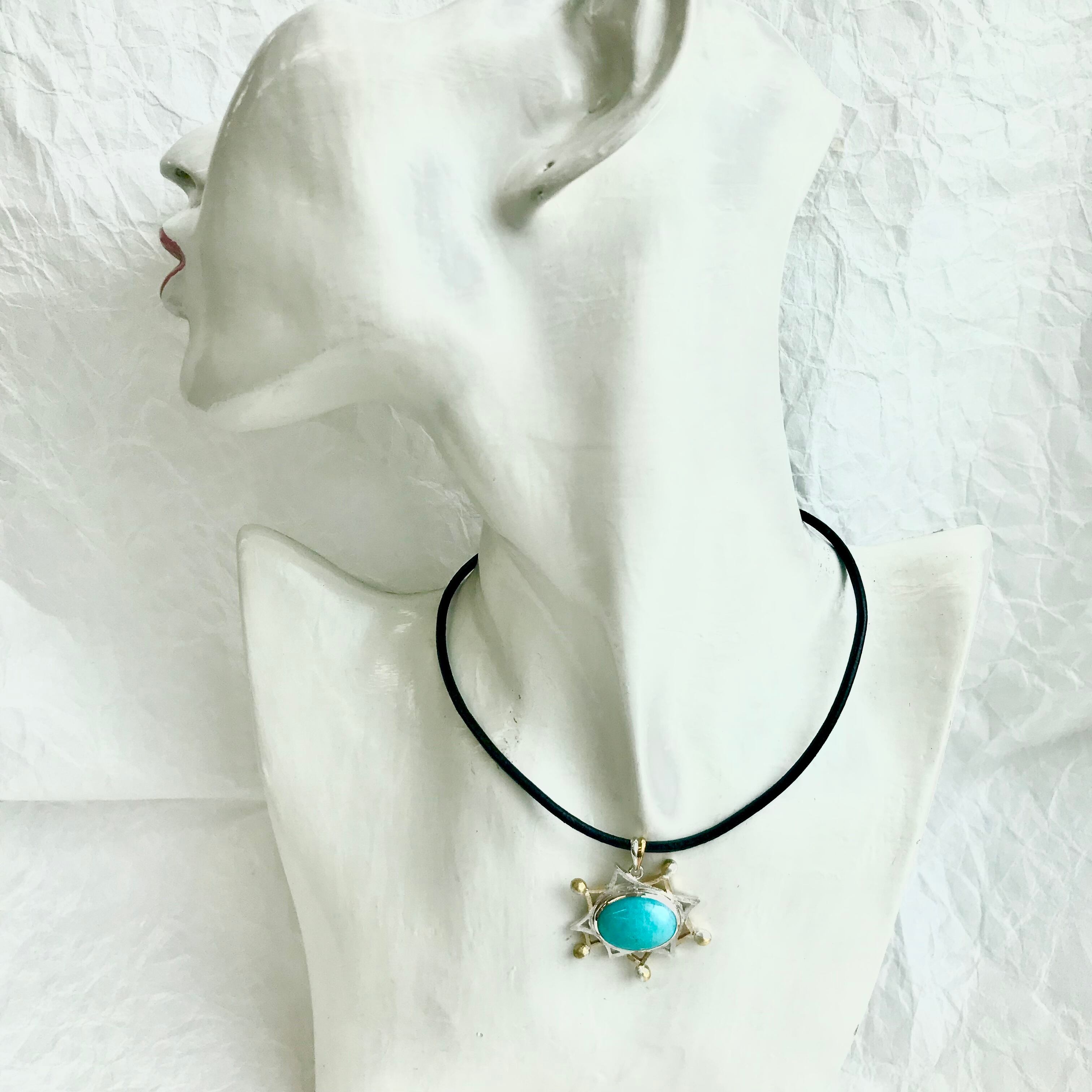 アマゾナイト・シルバー&真鍮コンビペンダント