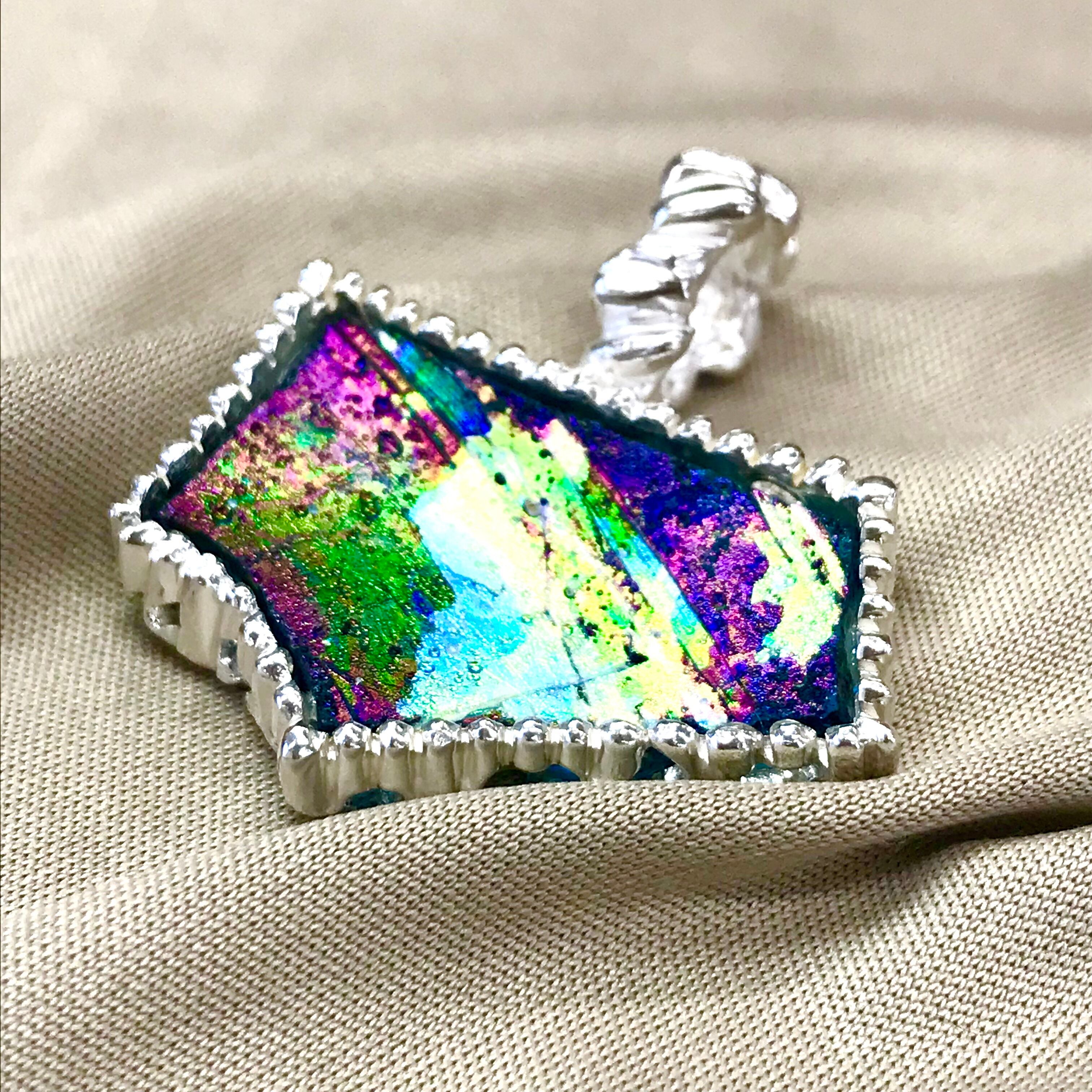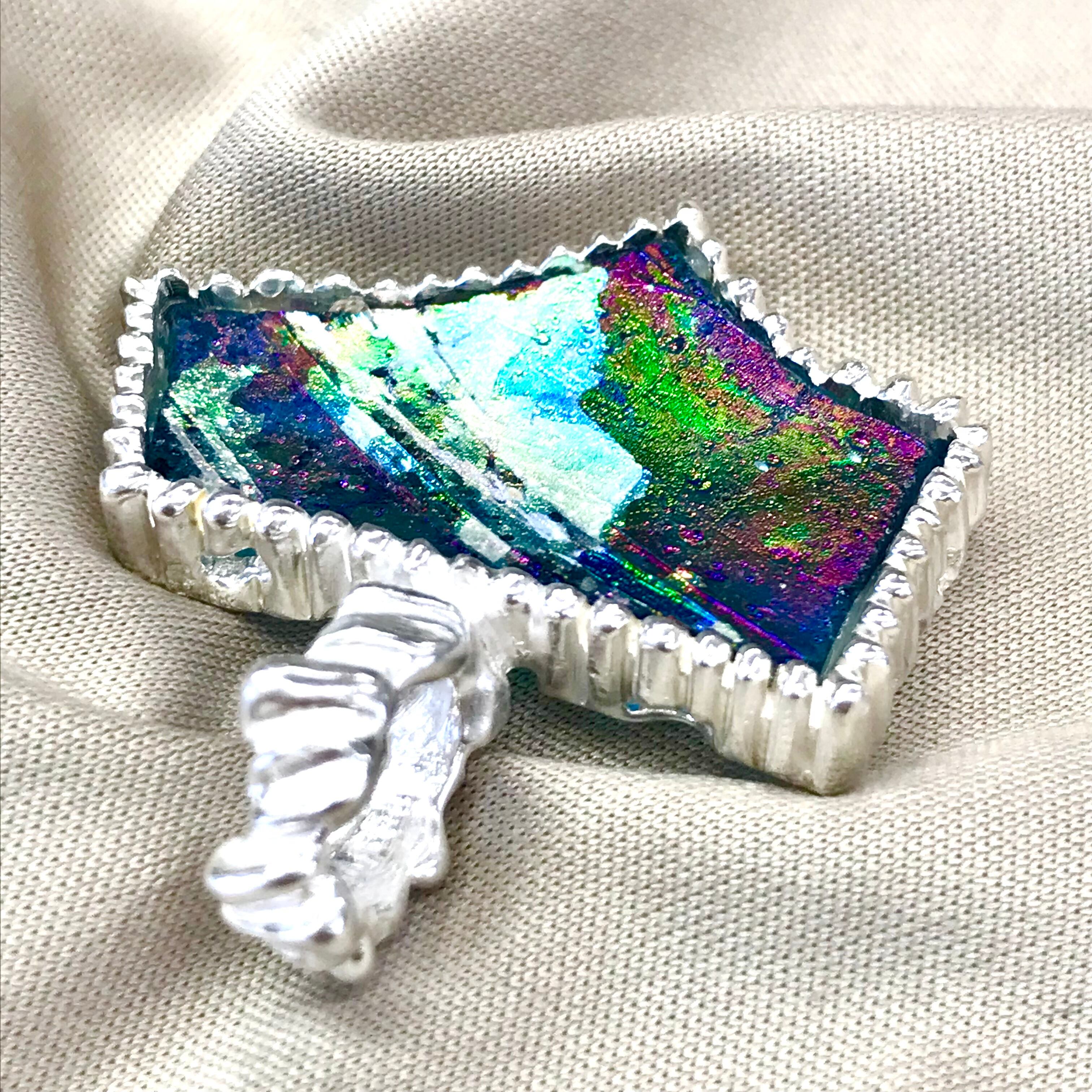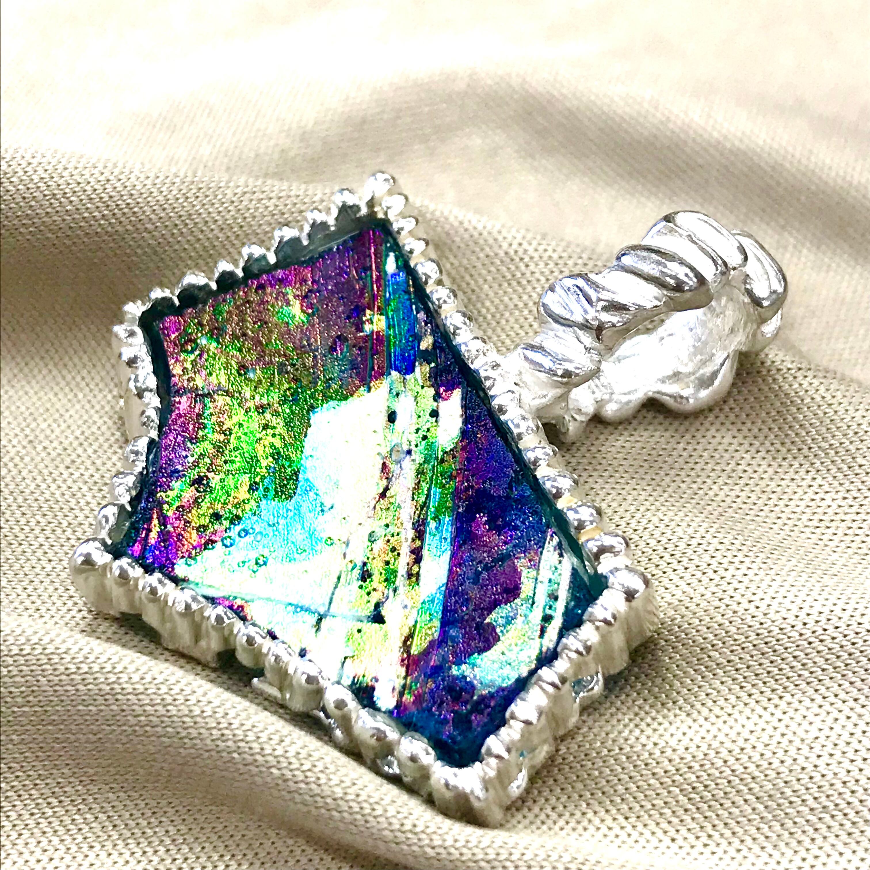 胸元に虹色の不思議なガラス!