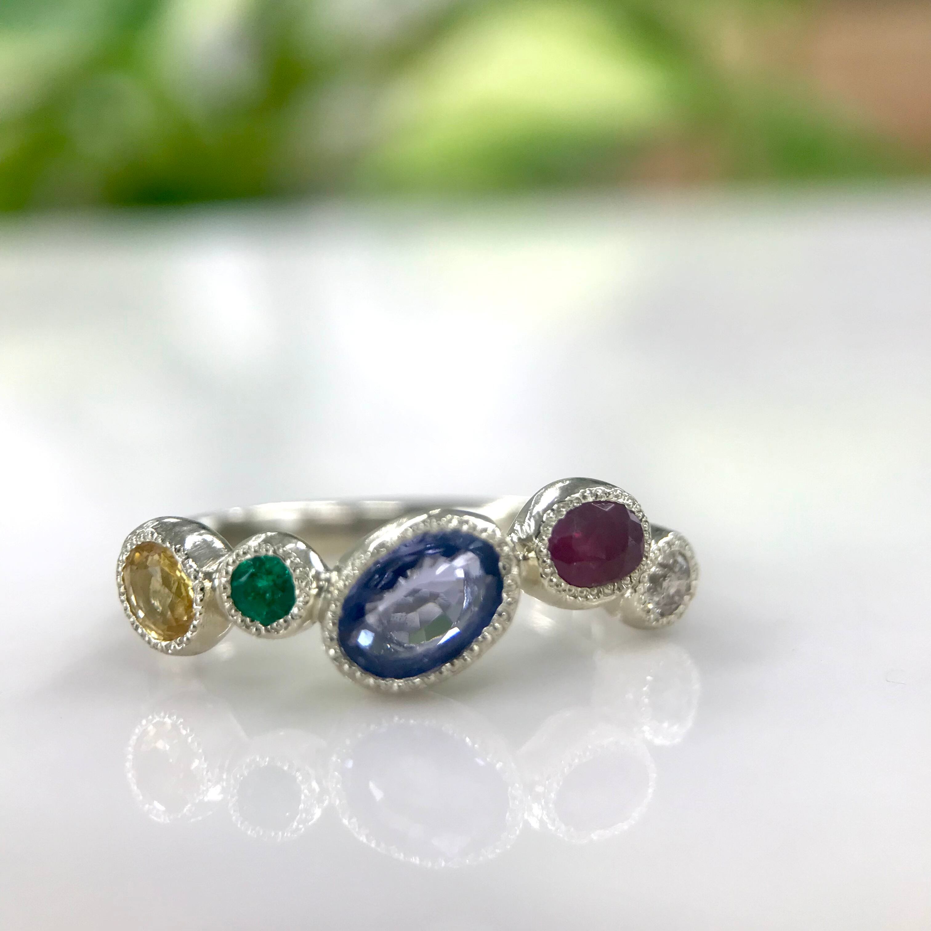 シャンパンゴールドK14WGリング(送料無料)四大宝石入り