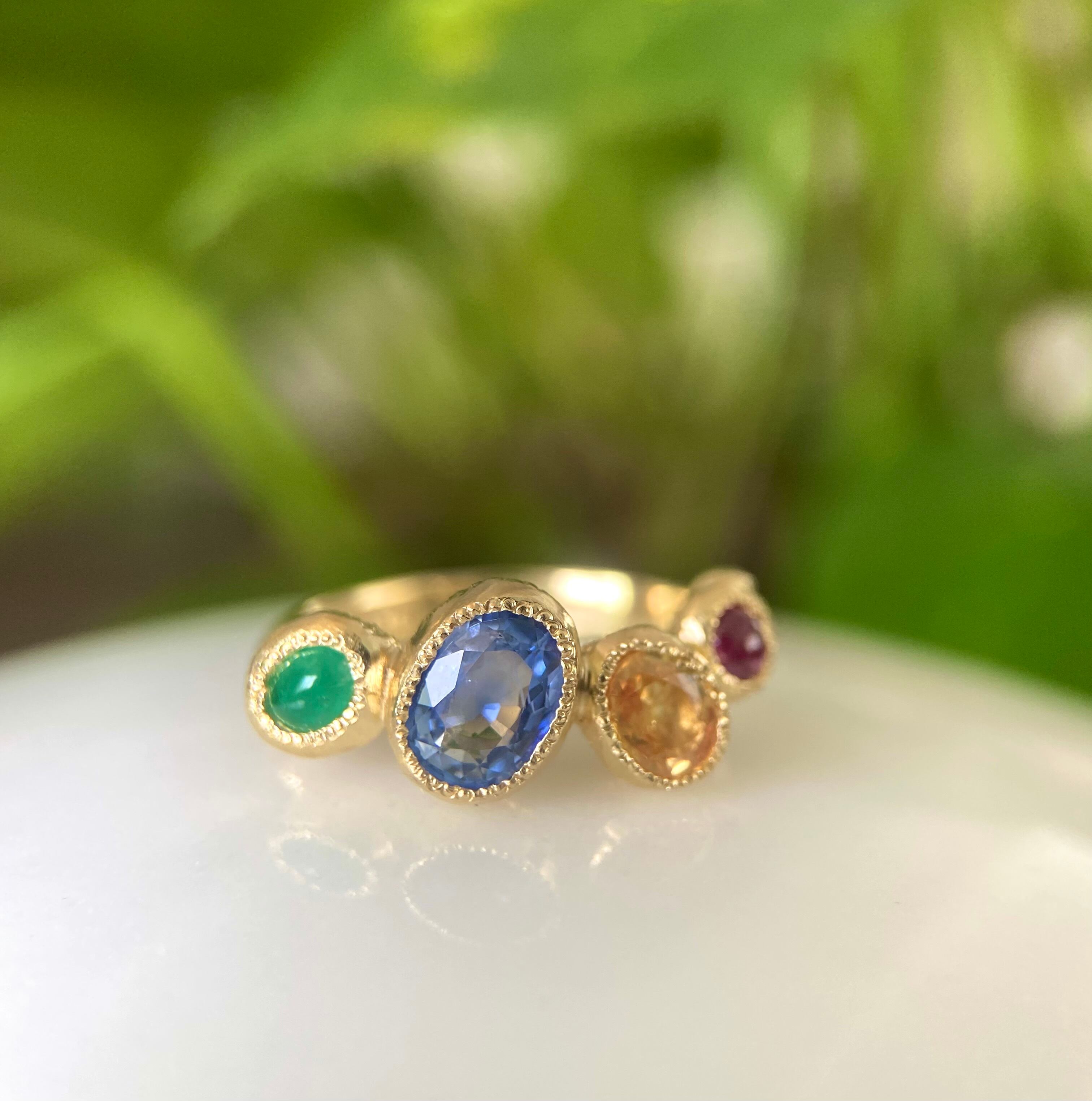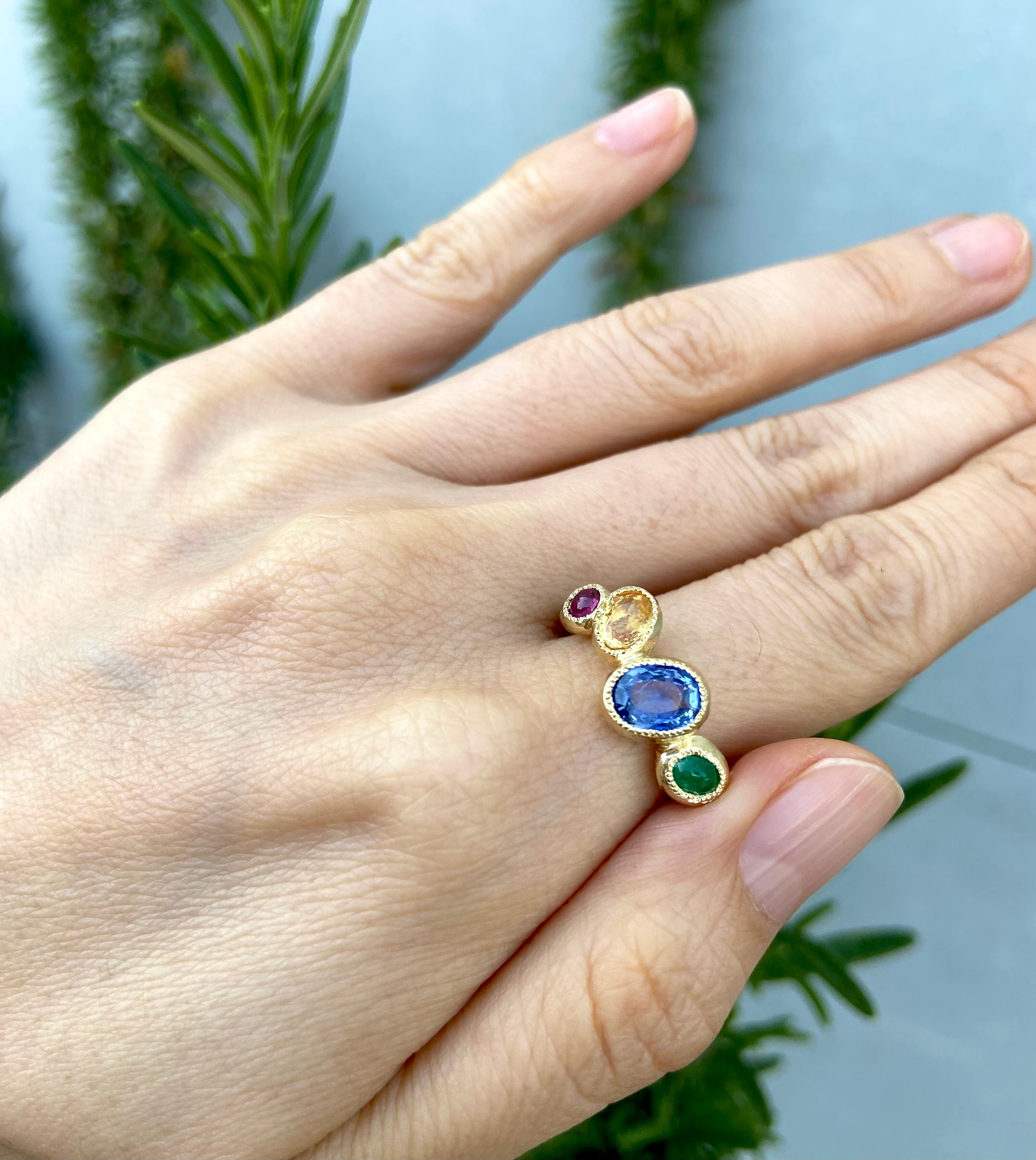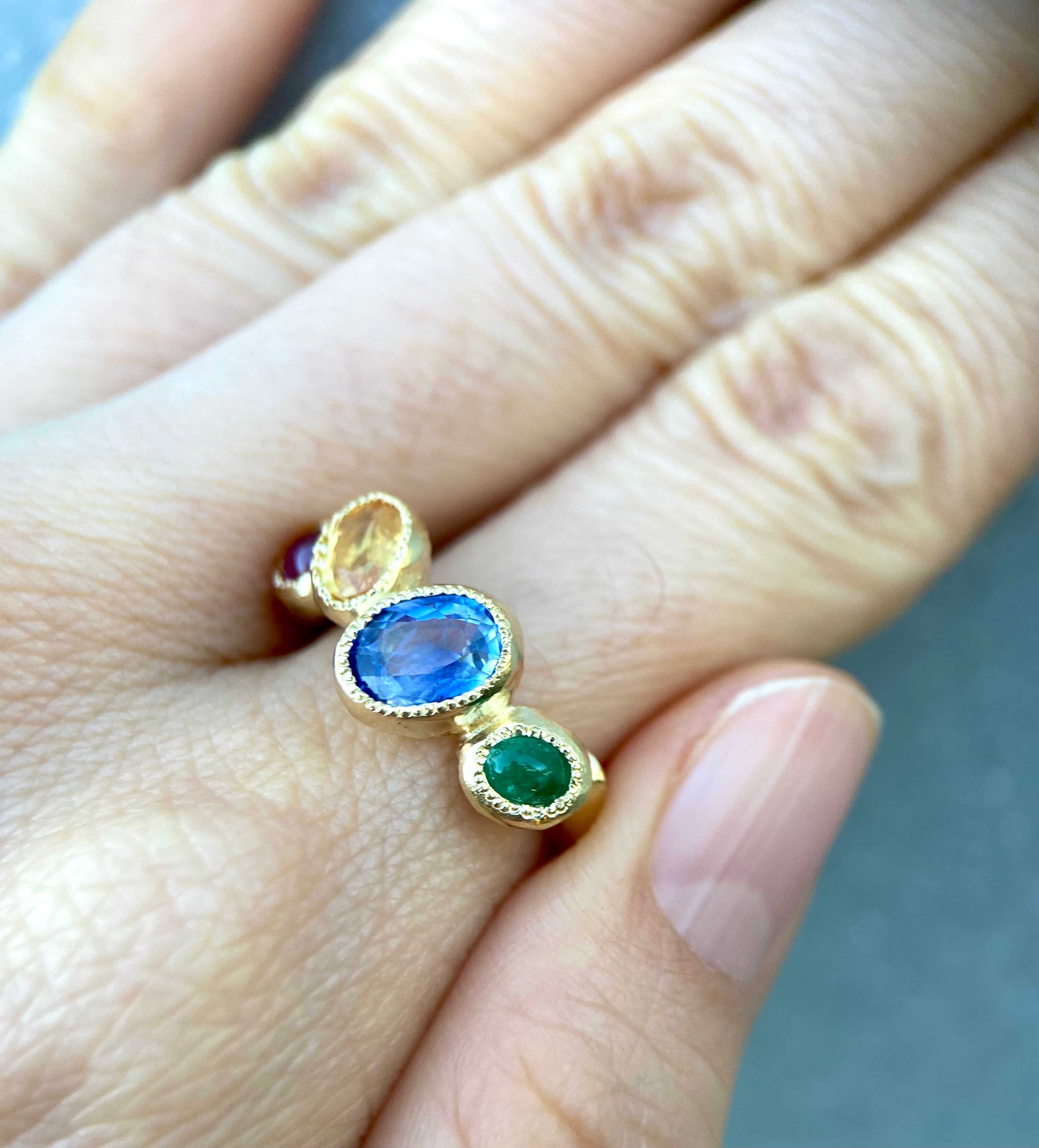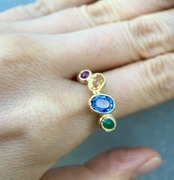 ルビー・エメラルド・サファイア2色K14YGリング(送料無料)色石色々目の保養